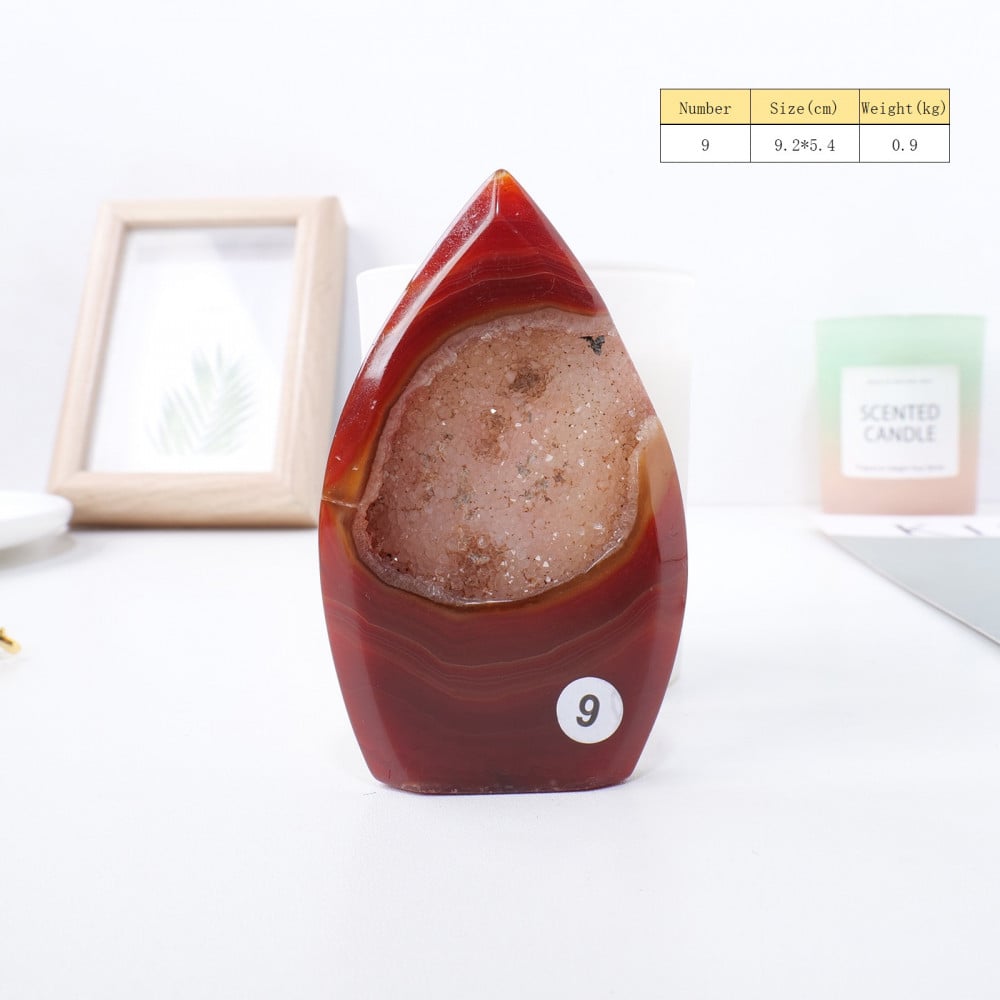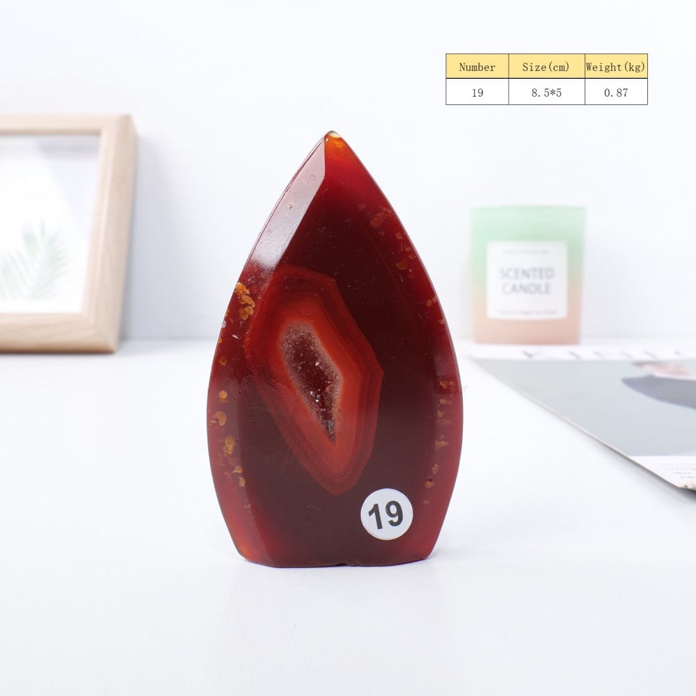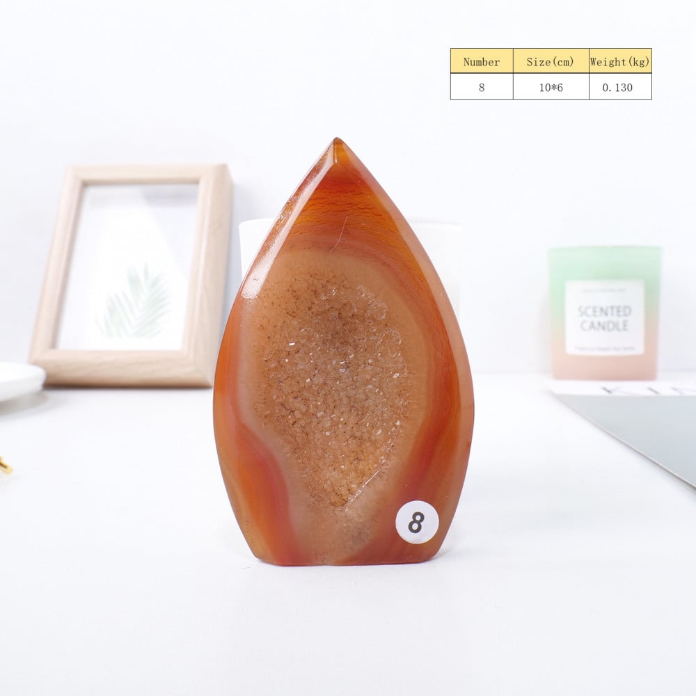 يتميز حجر العقيق الطبيعي بألوانه الزاهية وشكله الطبيعي الخلاب، مما يجعله قطعة فنية مميزة لأي مكان.